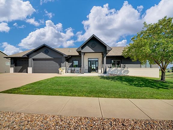 Beautiful Zero-Entry Home on the 14th Tee in Red Rock Estates! Welcome to this stunning zero-entry home nestled on a spacious 0.44-acre lot in the highly desirable Red Rock Estates, perfectly positioned on the 14th tee box of the golf course. With 6 bedrooms, 3 bathrooms, and over 4,200 sq/ft of living space, this property offers room to grow, entertain, and relax all in one of the area's most scenic settings. Step inside to discover a thoughtfully designed layout with main-level living, including generous gathering areas, tons of natural light, and space for everyone. The large kitchen and open-concept living room flow seamlessly to the oversized deck from the main level or take in the evening off the basement on the partially covered patio, offering unbeatable views of the course, perfect for outdoor dining, entertaining, or simply enjoying a peaceful sunset. The 3+ car garage offers plenty of storage and workspace, while the yard is flat, usable, and ideal for play, gardening, or even a future pool. With its blend of comfort, size, and location, this home is a rare opportunity in one of the area's premier golf communities. Owner is a licensed agent in South Dakota.