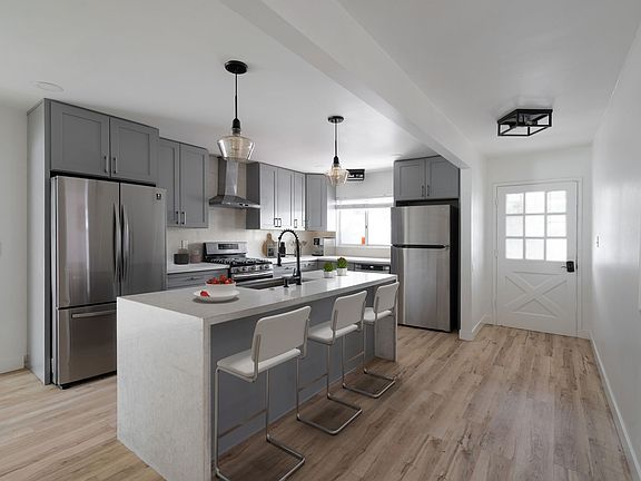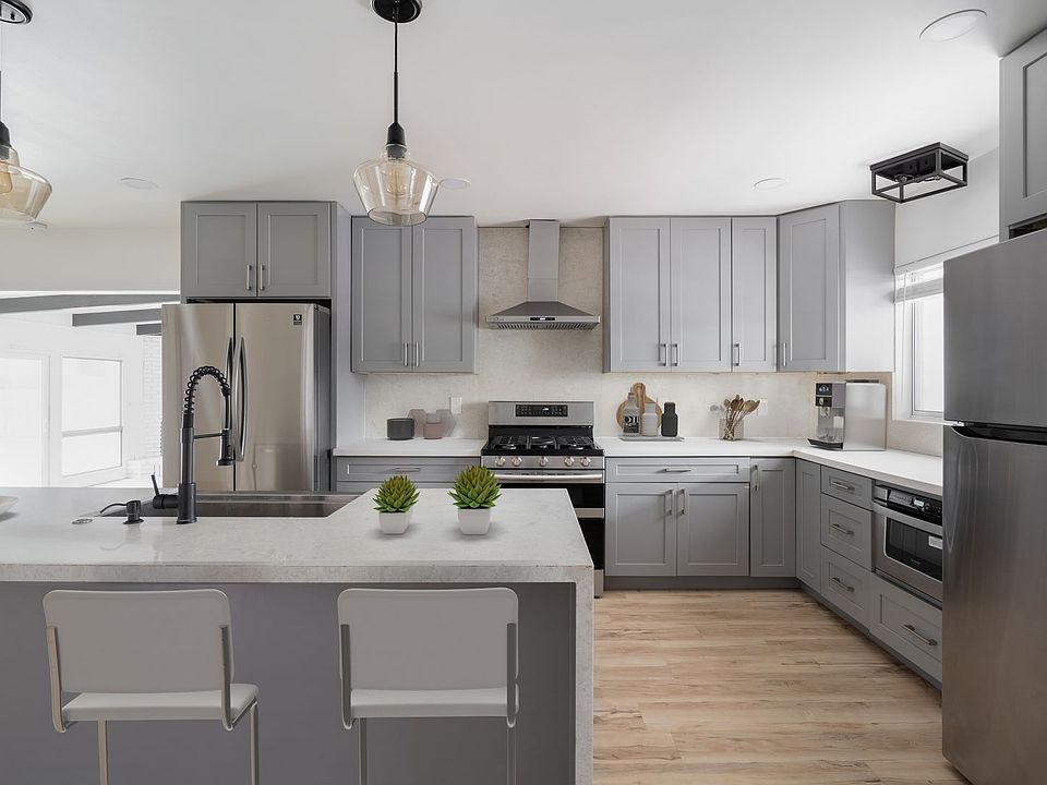 - Brand new cabinets, countertops, a new island, and new kitchen flooring