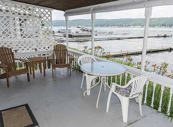Classic Conesus Lakefront cottage with updated kitchen & bath. Open floor plan w/ceramic tile, pine floors & berber carpeting. 3 bedrooms including large lakeside master. Wonderful lakeside covered porch. Dock included. Adorable & affordable! Don't wait! Be on the lake this summer!