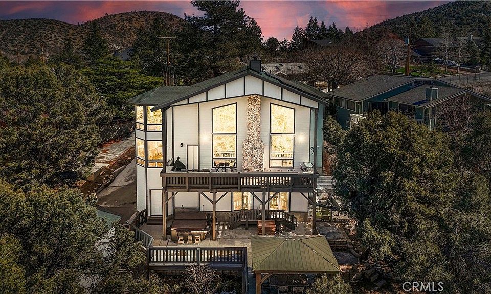 AMAZING MOUNTAIN DREAM HOME now available! Must see to appreciate the expansive VIEWS, VIEWS, VIEWS - truly remarkable. Large open family room and kitchen with cathedral ceilings and large windows. Beautiful kitchen with modern appliances. Primary bedroom, full bath AND a half bath on the main floor. Let's talk about the balcony with built in bar off of the living room....a unique and incredible space for hosting parties and events! Upstairs you will find a spacious loft, with a bedroom (no closet) and hang out area, separate laundry room, and huge bathroom with a large soaking tub. The bottom floor offers another bonus room, bedroom, and half bath...which leads out to more outdoor entertainment spaces. Gazebo! Spa! Storage room! There is a long driveway with room for your RV or extra vehicles. The owners have recently made so many beautiful improvements - paint inside and out. Newer septic. New kitchen sink. Too much to list - must see! With over 3400 square feet and three levels, this unique property affords you the opportunity to meet many needs. Looking for rental income? It would be easy to convert the bottom level into an ADU. Work from home? Fantastic set up for a home office/work space. Are you a commuter looking to escape to a quiet oasis? This home sits near Lone Pine Canyon on a very quiet street with easy access to the bottom of the 15 freeway. Just looking for a mountain retreat to host family and friends - this is it!!!! A quick drive away from Mountain High Ski Resort, the Wrightwood Country Club, shopping and restaurants in the adorable village of Wrightwood. Properties like this don't come along often...check it out soon! All information deemed reliable, however, agents/buyers to do own due diligence.