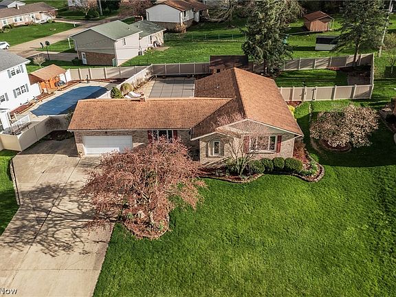 Lovingly cared for Brick and Vinyl Ranch located within the Perry Local School District. This home has so many updates and is well maintained. You will feel like you are on vacation in you private fence in backyard that has an unground swimming pool and plenty of green space too. The Kitchen is open to the Family Room and walks out to the backyard. The Lower Level is also mostly finished adding a Game/Entertaining space, Bar, Office/4th Bedroom (no egress), Half bath and oversized Laundry/Craft area. The main floor also has a Formal Living and Dining Space, 3 Bedrooms and 2 Full Baths. The Owner's Bedroom also affords access by sliding doors to the Back Pool area. So many upgrades : HVAC 2016, Fence 2020, Well Holding Tank 2019, 2021 : 5 New Interior Doors, Kitchen Countertops, New Countertops in Full Bathrooms, Newer Luxury Vinyl floors in Kitchen and Hallway, New Lighting in Kitchen/Full Baths/Hallway/Dining Room/Entrance, Ceramic tile floors in full baths, 2022 : Sump Pump Replaced, Owners Bedroom Carpet, Updated Electrical Box, Shed Painted and repaired, New baseboard/trim and painting throughout.