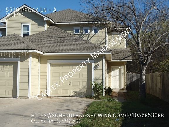 This 1496 square foot apartment home has 3 bedrooms and 2.5 bathrooms. This home is located at 5510 Prock Ln #A, Austin, TX 78721.