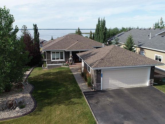 Fantastic 4 bedroom WALKOUT bungalow with THE BEST lake views!! New vinyl plank, granite counters, stainless appliances, gas stove, stone fireplace, covered deck and lower patio is just the start!! Huge Island slab in the awesome kitchen with wood cabinets opens to the living/dining room area with f/p and numerous south facing windows with patio doors that lead to the deck. The master suite takes full advantage of the lake views and features a 4 piece ensuite with glass shower. Another bedroom and 4 piece bath round out the main floor. In the fully finished walkout basement you'll find two more massive bedrooms, one with lake views of its own along with a 4 piece bath and a great family room. Garden doors from the family room lead out to the covered patio. The garage is a heated oversized double measuring 29 feet long on one side...wow! As an owner you can enjoy amenities like the private marina, swimming pool, fitness centre, clubhouse and beachfront park. New hwt and mw/hoodfan as well!