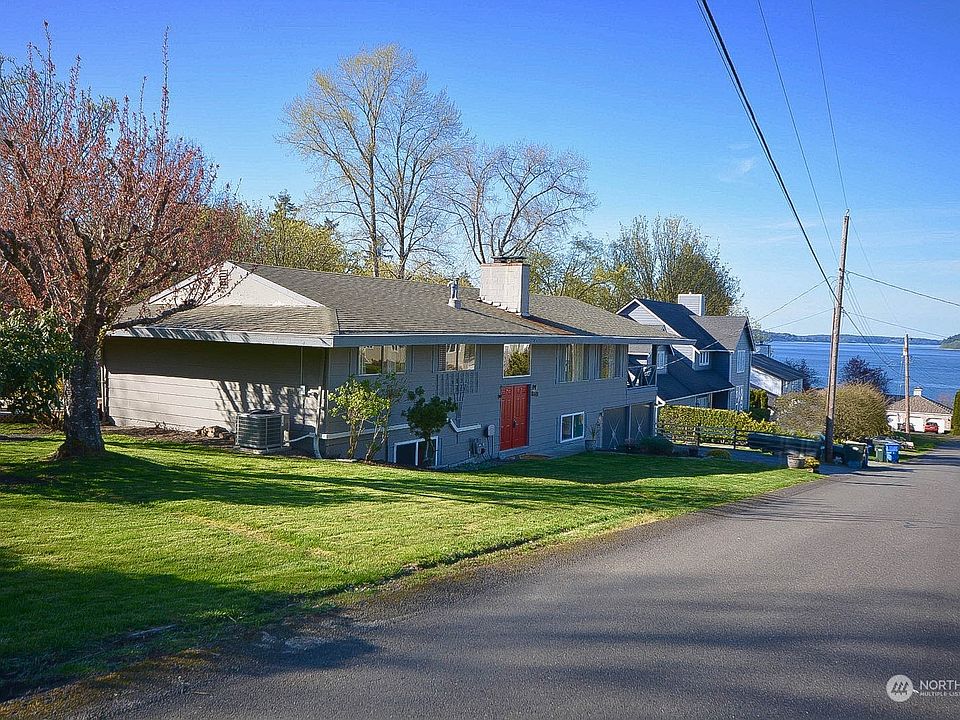 Multigenerational living at it's best! Airbnb? Long term rental? You pick the purpose this classic home will serve. Beautiful views of the sound, and a community beach front with boat launches and kayaking! This home sits on a shy .25 acre lot with fruit trees, garden spaces, RV parking and expansive decks for entertaining. Take the nearby community path to your wonderful and peaceful Sound access. This large home features 3 bedrooms on main/ bath off primary/ country kitchen/ dining room. Large family room with a woodburning fireplace, opening up to a large main story covered deck/ beautiful and expansive water views! Lower level apartment featuring/kitchenette/2 bedrooms/3/4 bath/private entrance/living room/wood burning stove /Hurry!