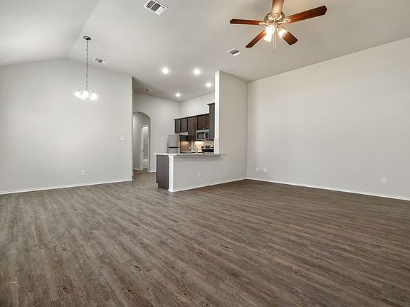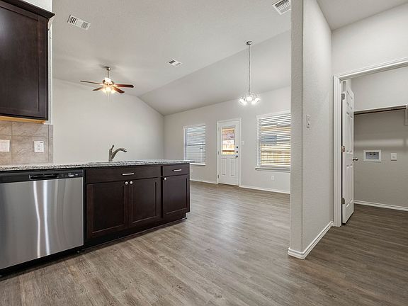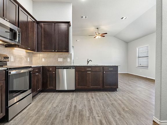 Granite kitchen counter-topsVaulted ceilingsStainless steel kitchen appliancesUnder-mount kitchen sinkSprinkler system