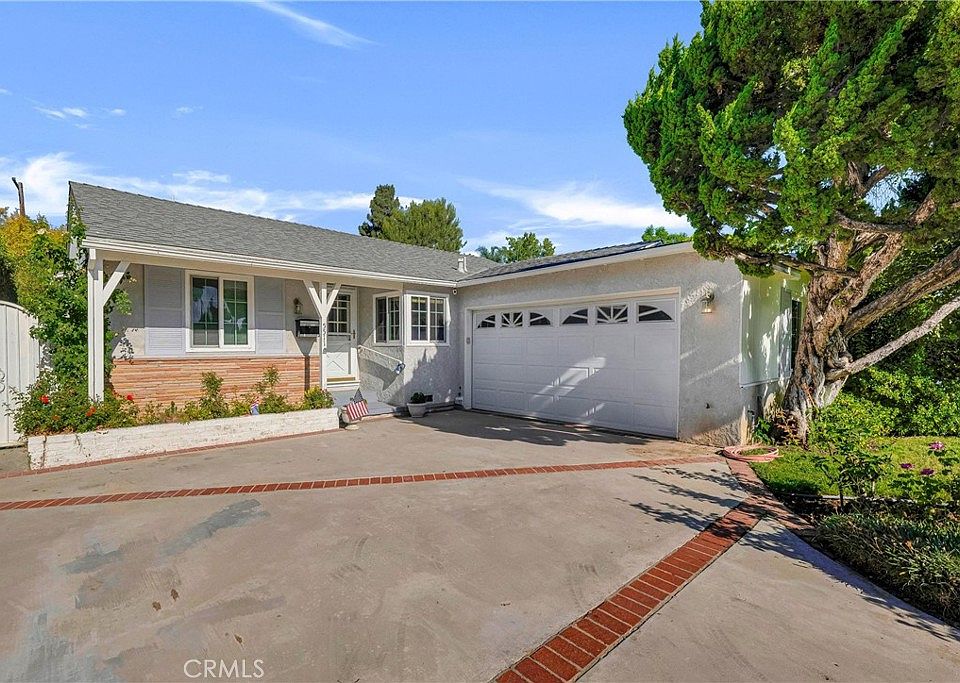 Discover this inviting 3 bedroom, 2 bath mid-century rambler in the heart of Sherman Oaks, offering 1,400 sq ft of living space on a 6,752 sq ft lot with timeless character and opportunity to update and reimagine to your tastes. Great curb appeal with lush front lawn, abundant roses, mature shade trees, and brick accents to the drive and the front porch, creating a striking first impression. Fresh interior paint and carpet throughout! The formal entry leads to a welcoming living room with a striking, stacked stone, fireplace, crown molding, and a sliding glass door opening to the backyard. The adjoining dining area features decorative wainscotting, pitched ceiling with exposed beams, built-in shelving, a window seat, and direct yard access. The kitchen blends warmth and function with wood cabinetry, stone counters, and stylish tile backsplash. The home offers three bedrooms including a spacious primary suite with crown molding, private stacked stone fireplace. Dual closets, and an en-suite ¾ bath. Two additional good-sized bedrooms share a ¾ hall bath. The attached 2-car garage includes a dedicated laundry area. Additional features include dual pane windows and a whole-house fan. Outdoors, a lush retreat awaits with a concrete patio, partially covered, accented by brick ribbons, walkways edged in brick, verdant lawn, mature trees, and bordering hedges for added privacy. Wonderfully situated in a quiet, friendly, residential neighborhood near highly rated schools, shopping, dining, entertainment, recreation, the excitement of Ventura Blvd and the natural space of the Sepulveda Basin Recreation Area. Don’t miss this opportunity for a rare property with timeless character, abundant space, and incredible potential in a prime location.