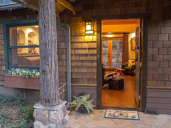 BEAUTIFULLY REMODELED WITH A CRAFTSMAN DESIGN + LESS THAN A MILE STROLL TO THE VILLAGE. THIS 3 BEDROOM (1 without a closet)1.75 bathroom home has handcrafted custom cedar beams and trim used throughout along with hickory hardwood flooring and doors,duel pane Sierra Pacific wood windows. The Living room and kitchen have high beam ceilings with French doors going out to a beautiful magical backyard.Plenty of room in the yard for a veg. Garden. There is a detach structure with electricity if someone would like for an art room or an office. A real quality cabin. A must see.