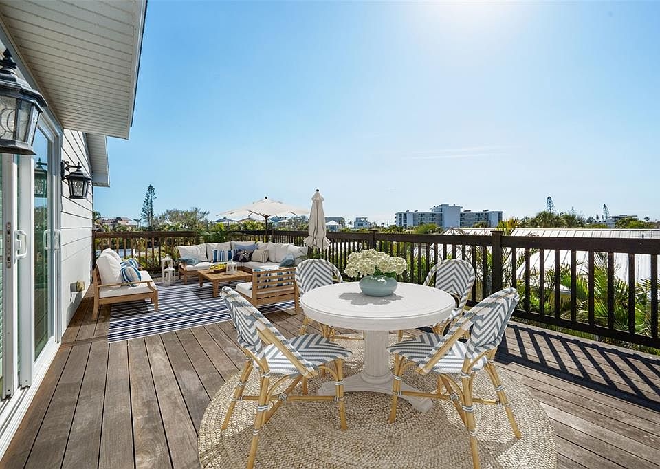 Vacation getaway, lucrative rental or full-time dream home, this Siesta Key residence is just steps from the powdery white sands of Siesta Key Beach. Some of the important features included a new roof, Ipe hardwood decks, brick paver drive and walkways, irrigation system, brand new stainless-steel appliances, two hot water heaters (one is tankless) and two a/c units. Step inside the open-concept great room, where neutral finishes, timeless travertine floors, and abundant natural light create an inviting ambiance. The kitchen is ideal for entertaining or quiet mornings at home, featuring rich wood cabinetry, granite countertops, counter-height seating, stainless-steel appliances. A bonus room adapts effortlessly to your needs, while the spacious guest quarters ensure privacy and comfort for family and friends. Three large guest bedrooms, two with ensuite bath, offer luxurious accommodations, while the private, top-floor primary suite is a sanctuary of its own. Retreat to your spa-inspired bathroom, revel in the enormous custom walk-in closet, or step onto the rooftop terrace. Outside, the lush tropical landscaping creates a secluded backyard oasis, perfect for relaxation. End each day with breathtaking sunset views from the rooftop terrace, a magical setting to unwind. With a two-car garage and a prime location just a short stroll to the vibrant shops and restaurants of Siesta Key Village, this home offers the very best of coastal luxury living. Don’t just dream of paradise, own it.