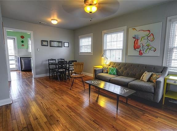 This charming 2/1 bungalow has the original hardwood floors, colorful kitchen, updated appliances, new windows and insulation. The home is filled with natural light and spacious outdoor entertaining space on the front and back porches. There is a fenced in backyard, two compost cans, extra storage in the garage (to be shared with owner), and stackable washer/dryer. The walkable neighborhood of North Loop is adjacent to Mueller and only a few miles from downtown and UT.
