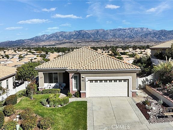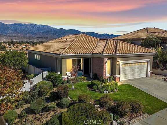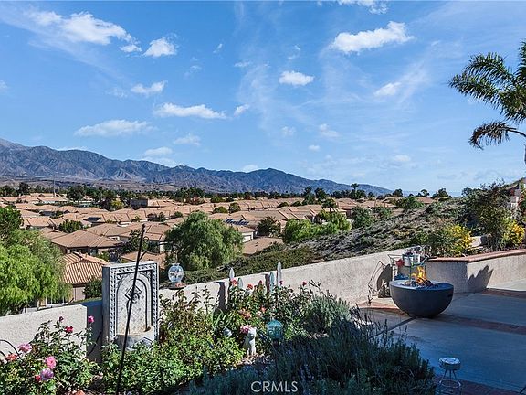 FABULOUS PANORAMIC VIEWS of MOUNTAINS & LIGHTS AT NIGHT from this Upgraded Trillion (2 BR, 2 BA + Den - 1,683 Sq. Ft). Features with this well-maintained home include: Two Bedrooms, thoughtfully located on opposite sides of the home, both with walk in closets (Master Closet is HUGE) and adjoining bathrooms; Great Room Concept, offering Wonderful Natural Light Flow and Views from Several Rooms; Neutral Laminate Flooring; Added and Enhanced Kitchen Cabinetry with Glass insets & Lighting; Almost new SS Appliances - Refrigerator, and Washer & Dryer will be included in the price (white Washer & Dryer); Cozy Fireplace; and Laundry Room with Storage and Utility sink. Enjoy indoor/outdoor living with a Covered Patio - Landscape (Front, Back & Sides) have been completely Redone and is Gorgeous - Vibrant Colorful Landscape and even has an English Garden - Two Avocado & One Lemon Tree - Beautiful Yard Areas with Stunning Views ....... Sun Lakes Country Club goes beyond just a place to live - It's a vibrant community designed to keep you Active & Engaged, offering: TWO 18-HOLE GOLF COURSES with 2 Pro Shops, THREE Clubhouses, TWO Restaurants, Bar & Lounge, Tennis, PICKLE BALL COURTS, Pools (Including Large Indoor Pool), Jacuzzi Spas, THREE Fitness Centers & Fabulous Planned Activities Offered on a Daily Basis. There are 80+ Social CLUBS, including: Dancing, RV Club, Yoga, Table Tennis, Cards, Bocce Ball, Bowling, Car Club, Drama/Theatre Club, Sewing, Tennis, Knitting, Bingo, Travel, Quilters, Art League, International Culture, Genealogical Society, Garden, Photography, Travel, and a lot MORE .... If that's not Enough, Add TRIPS AND TRAVEL EXCURSIONS scheduled all year long. Association Dues INCLUDE CABLE TV & INTERNET - The community is Located Close to Casinos, World Famous Shopping (Cabazon and Palm Springs), Restaurants, and Excellent Medical Facilities - SUN LAKES COUNTRY CLUB is has a backdrop of two Mountain ranges, which offer stunning views - LIFE IS GOOD in our Awesome Community!