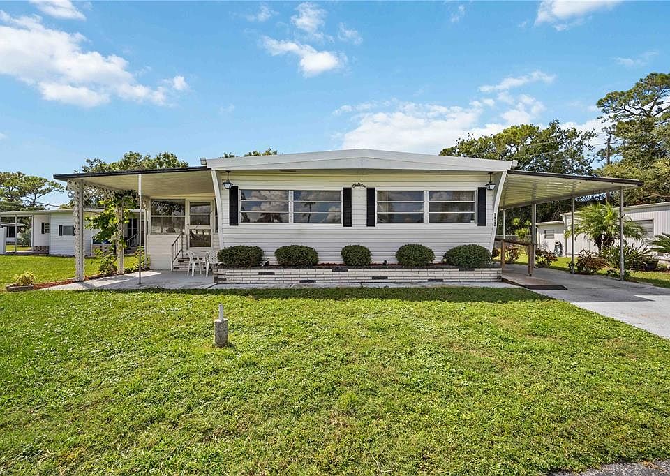 Welcome to Chateau Village Co-Op, a vibrant 55+ community in beautiful Bradenton, Florida, where this charming 1972 doublewide manufactured home offers 1,368 square feet of comfortable living space. Sold turnkey, this home is ready for you to move right in and start enjoying the Florida lifestyle. The spacious 240-square-foot Florida room, complete with its own wall-unit air conditioner, provides a relaxing spot to unwind or entertain friends year-round. The kitchen features plenty of storage for all your cooking essentials, while the primary bathroom includes a walk-in shower and the guest bathroom offers a convenient tub/shower combination. The home has several important updates, including an A/C unit installed in 2014, a newer water heater, and a newer electrical panel box for added peace of mind. The ramp in the carport remains, providing easy accessibility. Chateau Village Co-Op offers low HOA fees of just $220 per month, which include lawn care, cable TV, internet, water, and sewer. Residents can enjoy a range of community amenities and social activities designed for active adults, and one small pet under 25 pounds is welcome. Located in an X flood zone, no flood insurance is required. You’ll love the convenience of nearby services—Manatee Memorial Hospital and HCA Florida Blake Hospital are both just a short drive away, along with numerous medical offices and specialists. For daily needs, Publix, ALDI, and Detwiler’s Farm Market are all within minutes, making grocery shopping a breeze. For outdoor lovers, there are several dog parks nearby, including Happy Tails Dog Park and Creekwood Canine Park, and some of Florida’s most beautiful beaches—Bradenton Beach, Coquina Beach, and Anna Maria Island—are less than 30 minutes away. Bradenton’s public bus and Handy Bus van services make getting around town easy, especially for seniors who prefer not to drive. You’ll also find plenty of entertainment and activities nearby, from shows at the Manatee Performing Arts Center to social gatherings at the Senior Enrichment Center. Enjoy a morning coffee at popular local spots like Starbucks on Cortez Road or the cozy Banyan Coffee Co. Whether you’re looking for relaxation, convenience, or community connection, this home in Chateau Village Co-Op offers it all.