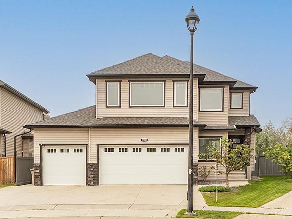 Welcome to this beautifully renovated home in one of Beaumont’s most desirable neighborhoods. Set on a large pie-shaped, fully fenced lot, it features a mature landscaped yard and new two tier deck perfect for entertaining or relaxing. The spacious triple garage includes built-in shelving for extra storage. Inside, the open-concept main floor is bright and inviting. The chef’s kitchen offers high-end finishes, modern cabinetry, and a large island flowing into the dining area and cozy living room with gas fireplace. A dedicated office and walk-in pantry complete the main level. Upstairs, enjoy a spacious bonus room, four bedrooms and a luxurious primary suite with spa-inspired ensuite and walk-in closet. The finished basement includes a legal two-bedroom suite with private entrance ideal for rental income or extended family. Located in a quiet cul-de-sac near schools and parks.