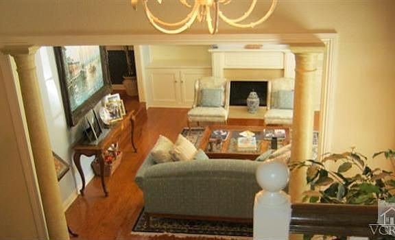 Sensational dream setting .85 Acre, secluded, gated estate at heart of tranquil cul de sac. Private majestic sized backyard features fenced pool, spa, pond, gas barbeque, playhouse, hammock and lots of grassy area for recreation. Fabulous floorplan is enhanced by gleaming wood flooring almost throughout the downstairs, moldings and upgraded lighting. Sunken living room with fireplace & built-ins, a formal dining room with a bay window. The kitchen offers a center island, walk-in pantry, breakfast nook & garden window. The family room adjacent boasts a stone fireplace with carved wood mantle. Second entrance to home from downstairs hallway. 1 bedroom downstairs can be office. Master BR w/vaulted ceiling has retreat, gas fireplace, 2 walk-in closets. Master bathroom features soaking tub, stall shower, garden window, 2 sinks. All bathrooms have bathtubs. **Special extras: 600+ square foot finished loft built above garage with air conditioning. Walking distance to Lindero Middle School.
