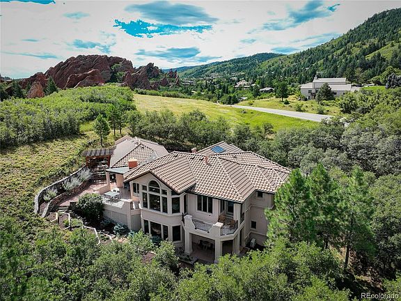 *Accepting Backup Offers, Pending* Visually stunning, surrounded by a Gambel Oak Grove and magnificent spire of Red Rock, on what is most likely one of the most private lots in Roxborough. This home offers a semi open floor plan with a beautiful foyer, vaulted ceilings, 8 skylights (each with power shades) and dual sided fireplace. The spacious dining room opens to the front terrace with a south-west facing view. The large living room is graced with windows that share a dramatic rock and valley view.  The breakfast room flows into the well appointed kitchen with large pantry, granite island and counter tops. You have access to one of two decks from this area as well as the back terrace sitting below the red rocks and bordering on private park land. The main floor also has an elegant primary suite, with a fireplace and balcony.  The primary bath has both a spa shower and soaking tub, double sink vanity and access to dual walk-in closets. Additionally on the main floor is a generously sized office/den that is brightened with sunlight, as well as two powder-rooms and a large laundry room.