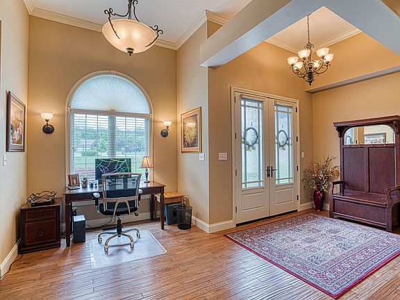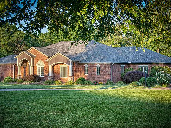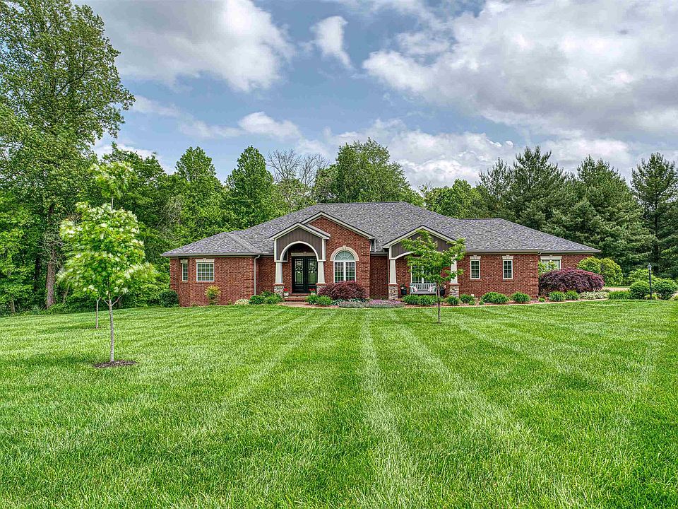 Seller will provide up to $10,000 towards purchaser’s rate buydown or closing costs with an accepted purchase agreement. NEW ROOF too! This large brick ranch is a true gem, offering a blend of classic charm and modern convenience. Situated on 2 acres, it features a spacious 3-car garage. Inside, you'll find acorn maple flooring throughout the main areas, complemented by elegant crown molding and tray ceilings. The custom kitchen is a highlight, boasting granite countertops, a wet bar with a wine cooler, and a cozy hearth room with a fireplace. The primary suite is a luxurious retreat with a sprawling bathroom that includes back-to-back vanities, two walk-in closets, a water closet with a bidet, and a tiled shower. The bedroom itself features a sitting area and a patio door that opens to a large screened patio. The screened patio is perfect for relaxation and entertaining, complete with a new jacuzzi tub and views of the private yard and expansive patio. On the other side of the home, you'll find two additional bedrooms, a Jack and Jill bathroom, and an oversized laundry room. The attached 3-car garage offers dual entrances to the house, adding convenience and functionality to this stunning property.