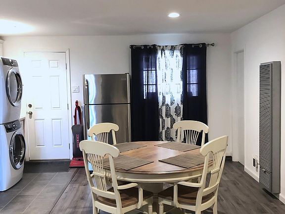 Back unit studio apartment with dedicated private parking and entrance. Washer & dryer, stove, microwave, and refrigerator included. Fully furnished with couch, tv stand, & 4-seat dining table (bed not included). All furniture in unit must remain. Utilities including WiFi Internet included. Perfect unit for single tenant or a couple.