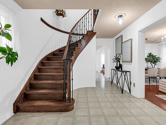 All-brick detached homeLarge drivewayGrand foyerElegant spiral staircaseRenovated great roomCustom built-in shelvingGas fireplace
