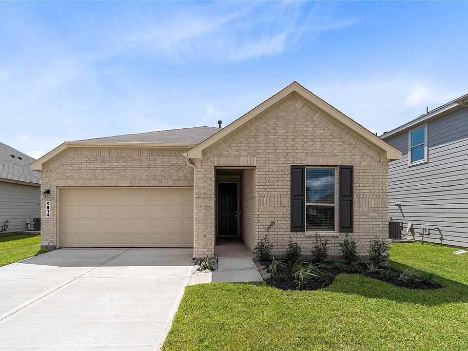 KB HOME NEW CONSTRUCTION - Welcome home to 5514 Blackbird Lane located in Sunset Grove and zoned to Hitchcock ISD! This floor plan features 3 bedrooms, 2 full baths and an attached 2-car garage. This beautiful single-story home also features stainless steel Whirlpool appliances including microwave, 42" Woodmont Cody cabinets, added breakfast bar to kitchen granite countertop, primary bathroom boasts of 2 sinks, secondary bathroom has a vanity with knee space, 2" smooth faux wood blinds, 8' entry door with SmartKey/SmartCode Entry Door Hardware, black exterior coach lights, front gutters, and rear extended patio slab. You don't want to miss all this gorgeous home has to offer! Call to schedule your showing today!