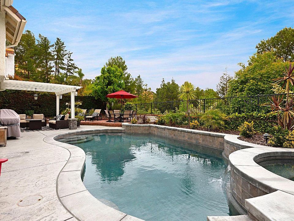 Immaculate, turn-key Agoura home remodeled thoughout with meticulous attention to detail. Oversized entertainers kitchen with huge granite island opening to spacious family room. Large living room with vaulted ceiling, formal dining with built in wine refrigerator and a downstairs bedroom and bathroom all contribute to an open floor plan. Tranquil master boasts beautiful views and bathroom suite with Italian stone. Two spacious secondary bedrooms with large bath complete the upstairs. Entertainers yard features in ground jacuzzi, gazebo and amazing views of Lady Face mountain. Plantation shutters, pleasing earth tones, hard wood floors and much more on a quiet cul-de-sac in award winning Las Virgenes school district. (Home received Coldwell Banker Value of the Week award for Feb. 2011)