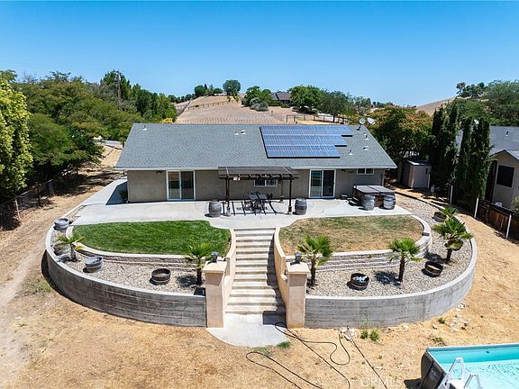 Welcome to 5514 Prancing Deer Place! The inviting 4-bedroom, 2-bath home offers approximately 1,947± sq ft of comfortable and spacious living on a usable, fenced 1+/-acre lot, ready for you to move right in! Step inside to a spacious formal living room off the entry, featuring a cozy fireplace and an abundance of natural light. The open-concept family room flows into a well-appointed kitchen with an oversized island bar counter featuring a wine refrigerator, and direct access to the backyard patio, perfect for entertaining. The primary suite includes a generous layout, a large walk-in closet, and its own slider to the backyard, just steps to the outdoor jacuzzi, your retreat awaits! Enjoy beautiful views of the property from multiple rooms, framed by a mature landscape including some oak and fruit trees. The land is thoughtfully designed with a beautiful extended cement patio and stairs to the above ground pool. There is a chicken coop, small animal enclosures, sheds and a separate fenced area that may be ideal for a horse or 4H projects. Additional features include a side driveway with vehicle access to the backyard, located next to the attached garage that may allow for trailers, equipment, or other opportunities. All of this nestled in the heart of Paso Robles wine country, surrounded by award-winning wineries, tasting rooms, and year-round events. A rare opportunity to enjoy country living with modern comforts and space to grow! Solar is owned!