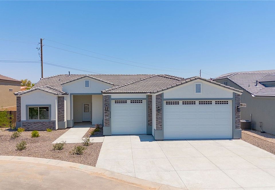 Welcome to the beautiful community of Patriot Estates! Located conveniently close to the cool water of the Colorado River, Laughlin casinos, and Fort Mohave/Bullhead City shopping, but tucked back in the peaceful foothills of the Black Mountains. Have your chance to live in this almost sold-out neighborhood with low HOA. As you enter the home you are greeted by a spacious entryway, a perfect place to put a bench or home decor. The living area and kitchen are flooded with natural light from the oversized windows showcasing the private backyard. Have your guests sit up at the huge granite kitchen island while you prepare a meal in the spacious modern kitchen equipped with stainless steel appliances and enjoy a meal on the covered patio that you can use all year long! The backyard is completely blocked in and private. A large three-car boat-deep garage provides additional space for storage, toys, or a workshop. The laundry/utility room is located in-house and conveniently close to the spare bedrooms. There is a 4th bedroom off the living area that could easily serve as an office or craft room. The large master bedroom can easily accommodate any size of the furniture. You can choose from multiple lots and floor plans if this one doesn't work for you! Come live where the cool water of the Colorado River water meets the dry sands of the Mojave Desert!