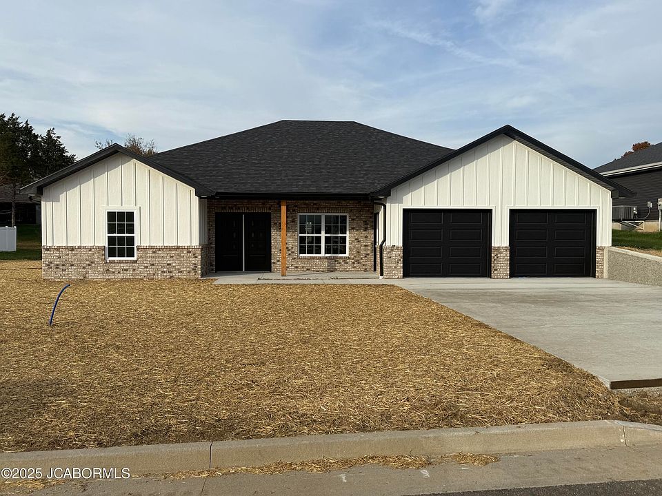 The primary suite includes a walk-in closet, a luxurious tile walk-in shower, and double sinks for added convenience. A two-car garage provides ample storage and parking.