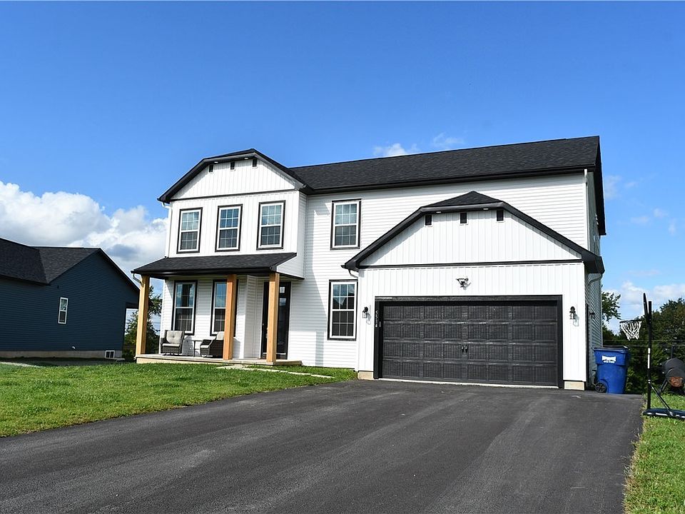 WELCOME HOME!! EXPECT TO BE IMPRESSED. THIS BEAUTIFUL 6 BEDROOM HOME IS WAITING FOR YOU TO MOVE RIGHT IN. THIS HOME FEATURES SO MANY UPGRADES. THE WALKOUT BASEMENT HAS BEEN FINISHED WITH THE SIXTH BEDROOM AND 1/2 BATH. ALSO INCLUDED IS HARD WIRED INTERNET AND IT IS ALSO WIRED FOR A 5 CAMERA SECURITY SYSTEM. KITCHEN INCLUDES UNDER CABINET LIGHTING, AN OVERSIZED PANTRY AND THE EXTRA SUNROOM/DINING OFF KITCHEN. SOFFET LIGHTING OUT FRONT AND MOTION LIGHTING IN FRONT YARD AND BACK YARD. BEAUTIFUL CEDAR PILLARS OUT FRONT GIVE SOME GREAT CURB APPEAL. SOME MORE UPGRADES ARE THE CUSTOM BLINDS, TANKLESS HOT WATER HEATER, PAVED DRIVEWAY AND 50 AMP PLUG OUTSIDE. ALSO, ALL BEDROOMS FEATURE GREAT SIZED CLOSETS AND CEILING FANS. UPGRADED VANITIES IN ALL BATHROOMS AND BONUS, MASTER SUITE FEATURES AN AMAZING SOAKING TUB. YOU WILL LOVE THE LARGE FLAT BACKYARD. IT IS READY FOR YOU TO MAKE IT YOUR OWN OASIS. THE LAUNDRY ROOM IS LOCATED ON THE SECOND FLOOR WITH 5 GREAT SIZED BEDROOMS. FIRST FLOOR HAS AN OFFICE/PLAYROOM WITH BEAUTIFUL FRENCH DOORS. THIS HOME IS LESS THAN A YEAR OLD. ALL THE PERKS OF A NEW HOME BUT NOT THE WAIT! THIS HOME IS IN THE VERY DESIRABLE WEST GENESEE SCHOOL DISTRICT.