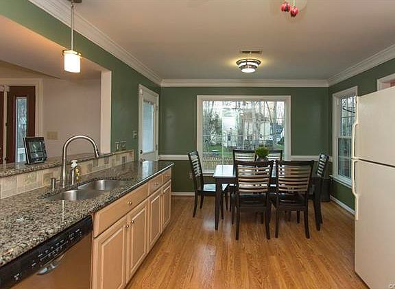 Gorgeous Transitional with Updates Galore! Hardwood Floors sweep through foyer to Formal Living Room and into the dining room with Chair Railing and Crown Molding! Fantastic Eat in Kitchen with Granite Counter Tops, Tile Backsplash, and Roll Out Drawers for organized and easy storage! Breakfast Bar into the Family Room, great for entertaining! Abundance of Light through with Skylights and 2 Story Family Room with Remote Gas Fireplace and New Doors to the back deck with enclosed blinds. Barbecue on your rear deck with your fenced in rear yard. Vinyl Siding and Thermal Windows for easy maintenance and efficiency plus full IRRIGATION. Half Bath with New Granite Vanity. Two Story foyer and turning staircase leads you to the second floor with 3 bedrooms with ceiling Fans and one offering Walk in Attic Storage. Complete with a Full Bath, Tiled Shower, Floor, Kohler Fixtures and Granite Vanity. Master Bedroom with Flat Screen TV, Great Lighting, Walk in Closet and Luxury Master Bath. Double Granite Vanity, New Cabinets, Glass Tile Shower with Seat and Tile floor...Very Tasteful Upgrades will have you Charmed! Top-rated schools, pools, tennis, walking trails, and fitness facilities too!