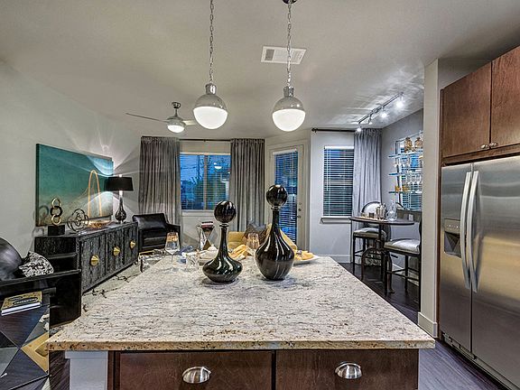 - Exterior features: 42" Upper Cabinets with Open Metal Shelving*, Barbecue, Business Center, Courtyard, Electric Vehicle Charging, Energy Star Stainless Steel Appliances, Executive Conference Center, Free Weights, Game Room, Garden, Gourmet Prep Island with Pendant Lighting*, Green Building, High Ceilings, High-speed Internet Ready, Large Vanity Mirrors with Decorative Lighting, Linen Closets*, Media Room, On-Site Maintenance, On-Site Management, Package Receiving, Pet Park, Pet Washing Station, Quartz Counter-top in Bathrooms, Sundeck, Theater, Tile Backsplash with Under-Cabinet Lighting, Urban Inspired One & Two Bedroom Apartments, Walk-In Showers*, Wood-Style Flooring In Living and Dining Areas