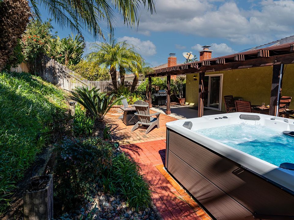 Welcome to Surfer's Paradise, a 3 bedroom 2 bathroom home ideally located just a 5-minute walk from the beach. Whether you are enjoying the stunning Carlsbad beaches, unwinding in the hot tub in your spacious and private backyard, or cooling off in the A/C inside, this well-appointed home is sure to please. As you step through the front door, you are greeted by a charming family room - complete with comfy seating and a shuffleboard table. The separate living room offers a flat-screen TV, fireplace, and additional seating to relax after a day in the sun. If you are looking forward to hosting dinners or family game nights, the fully equipped kitchen and dining area will offer everything you need. The kitchen is fully stocked, complete with a gas range, and plenty of cabinet and counter space for all your cooking needs. The kitchen also includes a breakfast bar that is ideal for quick meals on busy mornings. The primary bedroom is spacious and offers a king-size bed, as well as an en-suite bathroom with a soaking tub and step-in shower. The two additional bedrooms offer a king bed in one, and a queen bed in the other, while also sharing a full bathroom. All three bedrooms feature plush carpeting and ceiling fans to keep you comfortable throughout the year. The home also features a robust AC system that will surely keep you nice and cool on those hot summer nights. For those traveling with little ones, there is a portable crib located in one of the bedroom closets. There is also a trove of children's toys located in the family room bookshelf that will keep your youngest guests well-occupied. The backyard is a private oasis that is perfect for outdoor entertaining. The backyard features a patio area that couldn't be better for barbecuing and dining al fresco. The backyard also includes a spacious hot tub to relax in after a nice long day at the beach, sure to be one of the best parts of your stay. Beach toys and chairs can be found in a storage bin located behind the garage. Everything you could need for a relaxing day at Terramar Beach can be found here. This lovely home is conveniently located near shopping, dining, and entertainment options. The beach is a short walk to the West, Legoland is just up the road, and the Carlsbad Company Stores are equally as close, offering as many shopping options as your heart could desire! Don't miss the opportunity to live the beach life at this amazing Coastal Carlsbad home! Things To Note About This Property: - Stays of 30 nights or longer are managed by P.S. Platinum Property Management, Inc. (DRE 02215202) and are subject to additional lease terms. - Maximum occupancy of 7, sleeps 6 people in beds (2 King beds, 1 Queen bed) - Guests do not have access to the home's garage, all parking is driveway or street parking - This home is equipped with air conditioning which is available for your use. Operating instructions will be provided prior to your arrival. - This property enforces a No Smoking policy, both within and outside the home - NO EXCEPTIONS - This home is located in a peaceful, quiet neighborhood and is only suitable for quieter groups. Our rental agreement includes a no-tolerance policy around loud noise, excessive drinking that is disruptive to neighbors, over-occupancy, and parties. - Violations of this policy will result in deposit forfeitures and/or evictions that are strictly enforced. Please make sure that you are comfortable with these policies before renting with P.S. Platinum Vacation Rentals