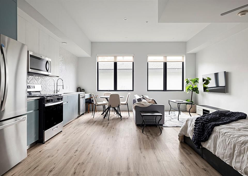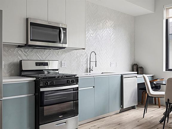 High ceilingsOversized windowsDesignated work areaStainless steel appliancesStunning quartz countersQuality designer finishesCustom tile backsplash