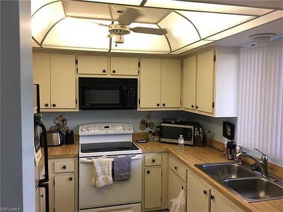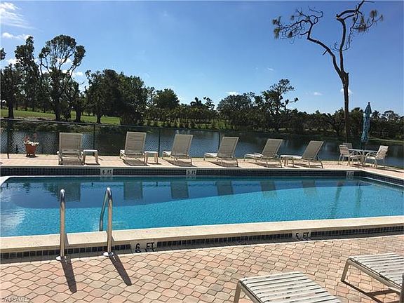 Fully furnished and ready for you to move right in and start enjoying the beautiful water and golf view course this home offers! The floor plan spaces the guest bedroom and primary bedroom apart and provides each with a full bathroom for maximum privacy. Having an open living space that encompasses the living room, kitchen and dining room serves as great entertainment space. No need to deal with public laundry rooms because this home has the washer and dryer hookup conveniently located in a closed closet in the lanai space. Not every unit has covered parking, but this home does and it is just steps from your front door. Carpets replaced in 2018. Golf View Manor is a 55+ community located just 3 miles to Botanical Gardens and 5 miles from 5th avenue where you can enjoy shopping, dining and entertainment. No golf membership required. Heated pool and plenty of guest parking. Low condo fees.