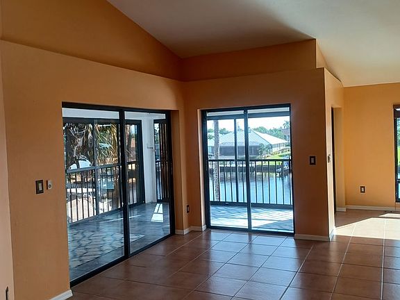 55 + Community welcomes you to this stunning 3-bedroom, 2-bathroom home located in the vibrant Cape Coral, FL. This large corner unit boasts a modern, updated kitchen equipped with stainless steel appliances, and bathrooms that have been tastefully updated for a sleek finish. The home features tile floors throughout, adding to its clean and contemporary feel. The living area is accentuated by a vaulted ceiling, creating a spacious and airy atmosphere. The master bedroom comes with a walk-in closet, providing ample storage space. Step outside to a large screened lanai, perfect for enjoying the Florida weather or for watching the manatees and dolphins. As part of an Over 55 community, residents can enjoy access to a community pool, perfect for socializing or simply relaxing. For boating enthusiasts, the property comes with a boat lift and dock. ONLY 10 minutes out, under one bridge. This home truly offers a blend of comfort, style, and convenience.