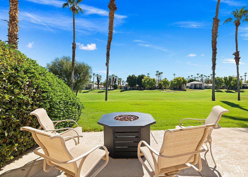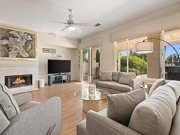 Located on the 2nd hole of the Palmer Private course at PGA West, this light, open and airy home offers 2 bedrooms, 2 baths + an office in a spacious 2,026 square feet! There is a large, well appointed kitchen with breakfast bar, and the great room features a cozy fireplace. The generous primary suite has a large bath with dual vanity and separate tub and shower, and an ample walk-in closet. Step outside to an oversized covered patio featuring a firepit and lovely views! And lastly there is a two car plus golf cart garage. This is a sought after floorplan, that rarely comes on the market. Come and experience resort living at its finest!
