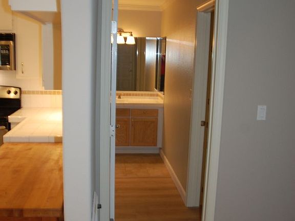 Beautiful renovated ground floor one bedroom one bath. Features dual pane windows, newer laminate wood grain floors in living room, hallway and bedroom, newer bathtub and tile surround, wood shutters, new track lighting in living room, air conditioning, private patio, stainless steel appliances including dishwasher, Fridge and range. Closet organizers in bedroom and kitchen pantry, assigned parking for one car, common area pool and laundry room. No smoking and no pets (Service animals allowed as required by law). 12 month lease required.