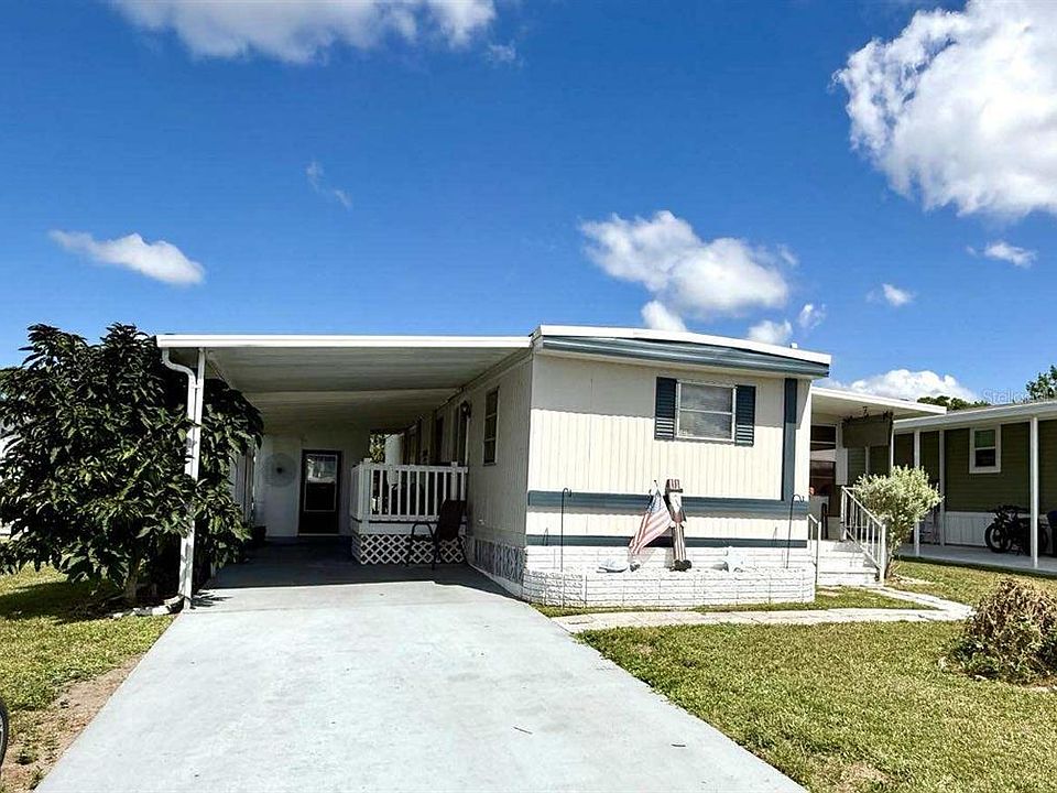 Welcome to Holiday Park, one of North Port’s most sought-after 55+ communities, where comfort, convenience, and active adult living come together. This manufactured home offers comfortable, low-maintenance living with 2 spacious bedrooms, 1 full bathroom, and a versatile flex room — perfect for a home office, craft space, guest room, additional living area, or a laundry room (already set up for that). Step inside to a bright and inviting open layout featuring a cozy living room and an efficient kitchen with ample cabinet space. The bathroom (remodeled in 2021) is conveniently located and has been fully updated. Enjoy the convenience of single-level living, ideal for ease of mobility and comfort. All new flooring in 2025 and a new A/C in April 2025. Outside, you'll find a private patio area perfect for relaxing or entertaining, along with a carport and storage shed for added convenience. The community itself offers a quiet, friendly atmosphere with well-kept grounds and often includes amenities like a clubhouse, planned activities, and walking paths (depending on location).The square footage shows 672 but you have over 1,000 under air. Whether you're downsizing or just looking for a simpler lifestyle, this home is a fantastic opportunity to enjoy affordable, active adult living. Holiday Park is a gated, deed-restricted community where the land is owned, not rented — and your low HOA fee / annual association fee of $2,340 is conveniently included in your taxes. Residents enjoy two community pools, tennis courts, shuffleboard, bocce, a fitness center, a clubhouse, and a calendar full of social events and activities. If you’re looking for affordable, active adult living in sunny Southwest Florida, this is the home for you. Schedule your private showing today and start enjoying the lifestyle you deserve in Holiday Park!