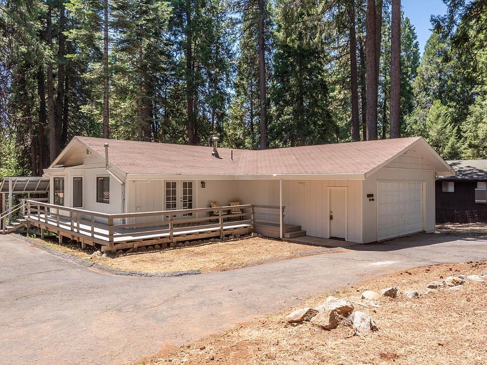 Welcome to this inviting and spacious home nestled on a wooded, nearly half-acre parcel, complete with easy-care landscaping and a fully fenced yard. This charming residence features two master suites, ideal for comfortable living arrangements, along with three bathrooms and an additional bedroom that could serve as an office. Step inside to discover an open floor plan highlighted by a cozy pellet stove and a dining area adorned with a picturesque bay window, perfect for enjoying meals with natural light streaming in. Located in an excellent spot close to Hwy 50, this home offers convenient access to mountain recreation, Jenkinson Lake, shopping, and schools, making it a haven for both relaxation and practical living. Don't miss out on the opportunity to make this wonderful property your new home!