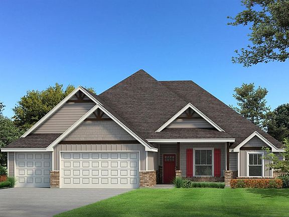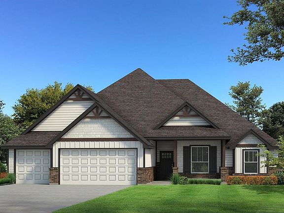 This Cornerstone Half Bath floor plan includes 2,550 Sqft of total living space, which features 2,250 Sqft of indoor living and 300 Sqft of outdoor living space. This spectacular home offers 3 bedrooms, 2 full baths, 2 covered patios, a powder room, a formal dining room, an informal dining area, a study, a utility room, and a 3-car garage with an in-groud storm shelter installed. The kitchen features 3 CM countertops, stainless steel appliances, stunning pendant lighting, custom-built cabinets to the ceiling with cabinet hardware installed throughout, modern tile backsplash, a center island equipped with a trash can pullout, and a large walk-in pantry. The great room offers a stacked stone surround center gas fireplace, 2 large windows, wood-look tile, a ceiling fan, rocker switches throughout, and Cat6 wiring! The primary suite holds a sloped ceiling detail with a ceiling fan, windows, and a cozy carpet finish. The primary bath supports a corner free-standing tub, separate vanities with framed mirrors, a walk-in shower, a private water closet, and a HUGE walk-in closet. Outdoor living comes with a wood-burning fireplace, a TV hook-up, and a gas line for your grill. This home also offers a tankless water heater, a whole home air filtration system, R-44 insulation, and so much more!