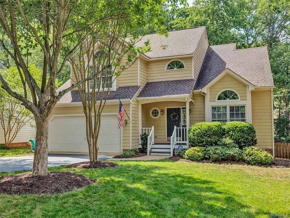 DELAYED SHOWING UNTIL JUNE 18 AFTER 4PM! A unique layout and ready for a new owner- Freshly painted, refinished hardwood floors on the first level, new granite in the kitchen, a deck that was doubled in size (now 22 x 12), fully fenced backyard, and all kitchen appliances convey including the stainless fridge (all appliances new in 2015) new roof 2008, new hvac and water heater 2012. Open large rooms, vaulted ceilings in living and master areas, lots of windows- sunny and bright spaces! Easy maintenance allows more time to enjoy the resort feel of this development. Award winning Woodlake is filled with things to do- fourteen miles of bike/walking trails, access to a 1700 acre lake, two outdoor pool complexes (included in HOA fees..and open with restrictions at this time), basketball courts, outdoor picnic areas, tot lots, fishing docks, and marina area with outdoor pavilion. Separate memberships (about $40/month) include indoor olympic size pool and multi level fitness center that overlooks the lake. Easy access to Powhite and Rt.288 from Woolridge Rd entrance-about 20-30 min. to downtown and airport, lots of restaurants, shops, services-easy living in Chesterfield County!