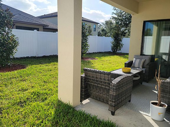 Amazing opportunity! PVC Fenced backyard (Install on Dec. 1, 2022). This 3 BR, 2 BA, 2-Car Garage, VOLUME CEILINGS Concrete Block home features a large pantry, 42'' wood cabinets space, glass bathroom shower doors, Quartz counters in Kitchen & Bathrooms, stainless appliances, includes washer and dryer, sliding doors into a large covered patio. Resort  lifestyle with beautiful community pool equipped with spacious covered pool lounge. This great location offers 8 minute drive to easy beach access and boat ramp. Just a short drive to the Fort Pierce city center and the US1 business district in downtown Fort Pierce It is also known as the Sunrise City, sister to San Francisco. Furniture negotiable.