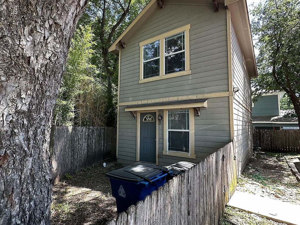 2-story layout with open living room and kitchen on first floor, and 2 equal sized rooms upstairs.
