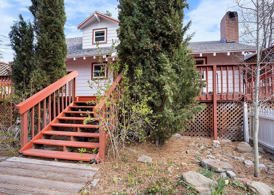 Come and see this cozy 2 story home that really gives you the mountain home feel. The front yard and back yard are filled with trees, some of which are apple trees. The front yard is fenced and has lots of room for kids and pets to play. The front porch is big enough for family gatherings, and stacking firewood for the colder season. Upon entering the home you are greeted with high ceilings and open floor plan. The living room is spacious and has a wood stove. The dining area is right off the kitchen and is great for entertaining. Two bedrooms are located down stairs along with the laundry room and 1 bathroom. Upstairs is a 3rd spacious bedroom with its own bathroom. The back yard has more of a private feel with a porch and shade trees. This home has a whole house water filter and a reverse osmosis filtration system for drinking water. New AC and Heater replaced in 2021.