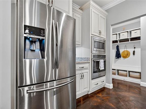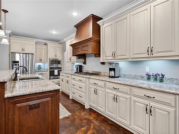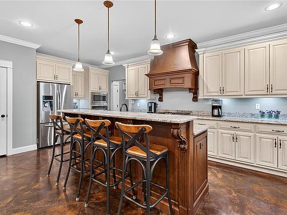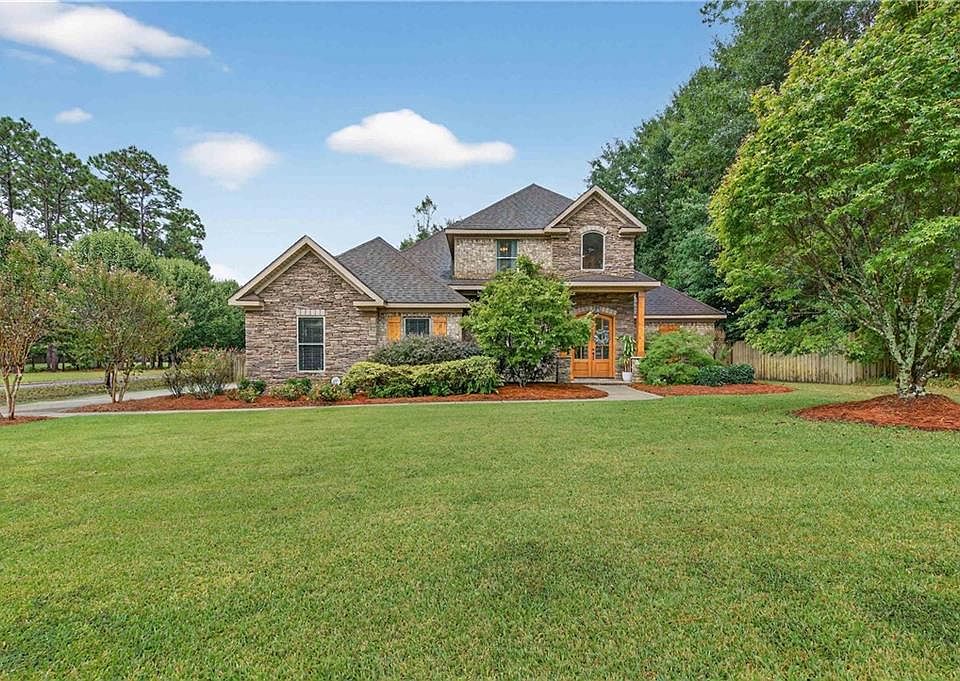 ***VRM Value Range Marketing. Sellers will entertain offers between $585,000 and $605,000.***Discover the elegance of elevated southern living in this custom-built home in the Riverwood Estates subdivision. This residence offers four bedrooms, three bathrooms, and a spacious fenced-in backyard. The exterior construction catches the eye from the street, crafted from stone, brick, and wood with cedar accent shutters and columns, exuding a timeless appeal. This gold-fortified home features spray foam insulation and Kevlar storm shutters for energy efficiency and safety, ensuring low utility bills and enhanced protection against inclement weather. The master suite boasts a triple-tray ceiling and a bathroom with a large jetted tub and a stone-tiled shower with dual shower heads, providing a luxurious retreat. The kitchen, along with the bathrooms and laundry room, features stone countertops, highlighting the pattern of elevated finishes throughout the home. Entertain with ease by enjoying the formal dining, breakfast nook, and bar-style seating at the kitchen island. Treated concrete floors run through the main level, while recessed LED lighting brightens every space. A mudroom-style entrance from the garage evidences thoughtful design, and the back patio offers an ideal spot for grilling and football games, complete with a tongue-and-groove plank ceiling and recessed lighting. Conveniently located near grocery stores, restaurants, and downtown Mobile, this home also benefits from the amenities of Riverwood Estates, including an in-ground pool, tennis and pickleball courts, a playground, and a boat launch with privately owned slips and a covered deck on Rabbit Creek/Dog River. This home effortlessly blends modern luxury with everyday comfort. Call your REALTOR® today to schedule your showing of this amazing property before it is gone. Buyer to verify all information during due diligence.
