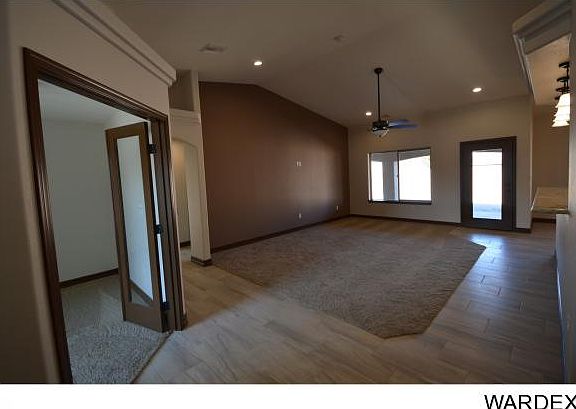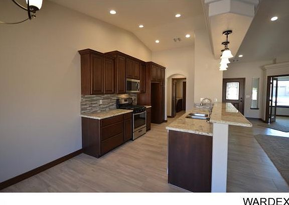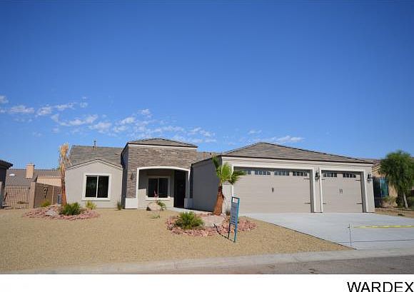 JUST COMPLETED AND READY TO MOVE-IN. Brand new 4 bedroom, 2 bathroom with a 3 car boat deep garage. Kitchen has granite countertops. Vaulted ceiling, ceiling fans, laundry room w/sink, cabinets and linen closet. House is pre-plumbed for water softener. Block wall fencing with two wrought iron side gates, pool size backyard with covered patio, landscaped front yard. 2 year Builders Warranty included. Located close to Valley View Hospital, new Walmart, Avi Casino & Colorado River. Property taxes are for land only. Seller is licensed RE agent in AZ.