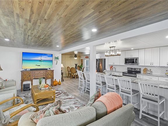 Affordable Coastal Living at it Finest! Welcome to 5517 Sir Walter Way located in Old Bridge Village. Prepare to be captivated by breathtaking views from your two beautiful lanais. This remarkable home is perfectly situated on a wide canal, providing the ultimate waterfront living experience. The home has had a renovation, featuring new windows, insulated walls, 3/4 plywood, and luxury vinyl floors. The kitchen is the cook's dream for entertaining and conversations as it showcases a huge island with new countertops and appliances. A spacious master bedroom and bath, complete with dual sinks, ensure you have all the space you desire. This fantastic home includes a trek dock for your boat giving you easy access to the Gulf of Mexico. Enjoy resort-style 55 + gated community nestled along Caloosahatchee River. Embrace the vibrant lifestyle of fitness center, tennis, Pickleball, and shuffleboard just to name a few. Brand new pool and hot tub to unwind and relax. The 81-slip marina, complete with boat and kayak launch. Don't miss this chance to experience the beauty of waterfront living in a vibrant community. See yourself and embrace the ultimate waterfront dream! This home would make a great vacation rental for your income-producing property.