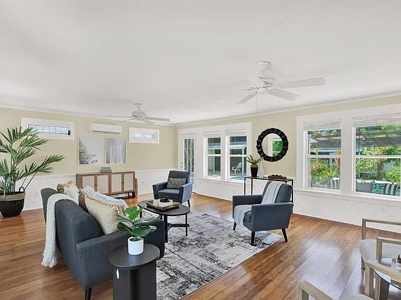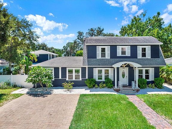 This versatile retreat is unlike anything else on the market. A rare Gulfport estate sitting on a truly private double lot, this property blends timeless character with modern upgrades across three separate residences- the main home, a stand-alone cottage, and a garage apartment overlooking a resort-style pool. Whether you’re envisioning multi-generational living, private guest retreats, or income-producing opportunities, the versatility and lifestyle here are unmatched. The main Dutch Colonial home spans over 2,200 sq ft with 3 bedrooms, 2.5 baths, and rich hardwood floors. A spacious updated family room opens directly to the pool deck, while a covered porch overlooks the lush backyard-creating the perfect setting for indoor-outdoor living. The standalone cottage has been completely remodeled from top to bottom and never lived in since. Bright and airy, it features a full kitchen with stone countertops, modern appliances, a stylish bath, lofted bedroom, and luxury vinyl plank flooring. Above the oversized two-car garage, the freshly renovated studio apartment offers abundant natural light, sleek stone counters, and luxury vinyl flooring - plus a bird’s-eye view of the backyard and pool that makes every day feel like a private resort. Step outside and this estate transforms into a tropical sanctuary: a sparkling in-ground pool, outdoor kitchen, travertine patio, and fruit-bearing trees (including mango), all surrounded by privacy fencing. Recent upgrades include one of the roofs (2017), electrical, plumbing, irrigation, gutters, pool resurfacing, tankless water heater, refinished oak and bamboo floors, landscaping, driveway, full interior renovation of the guest apartment, cottage and more - blending peace of mind with lasting appeal. All three residences enjoy private entries both to exterior roadways and interior pool/backyard, making this one of the most flexible and unique estates in Gulfport. Just blocks from the city’s historic waterfront district, vibrant arts and dining scene, and less than 10 minutes to both the Gulf beaches and downtown St. Petersburg- this home offers a one-of-a-kind lifestyle in a prime location without the added cost of being in a flood zone!