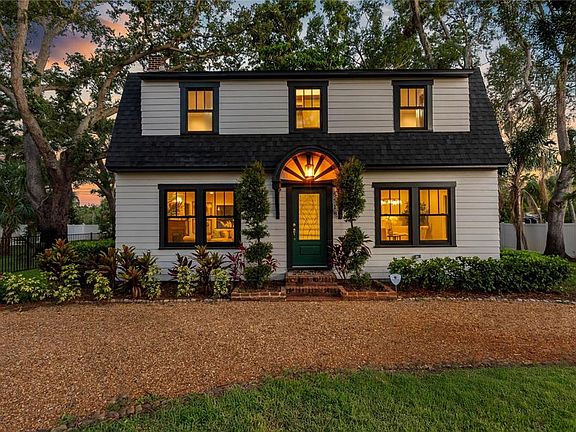 Discover this exquisite Dutch Colonial estate from 1924, meticulously preserved and on an oversized lot (1-1/2 lot) in the heart of Gulfport, known for its historic neighborhoods and vibrant arts scene. The home has been beautifully renovated, featuring upgraded systems and finishes while retaining its historic charm. It boasts three generous bedrooms and 2.5 baths, highlighting elegant quartz countertops and designer tile accents. Recent upgrades include a roof (2022), electrical and plumbing systems, an underfloor HVAC (2022) system for energy-efficient airflow, premium Andersen hurricane-impact windows (2022), new Hardie board siding, and uniform tile flooring for lasting durability and ease of maintenance. Original hardwood floors have been restored to their original beauty. At the heart of the home lies a chef's kitchen outfitted with high-end Café appliances, a stylish backsplash, quartz countertops and a delightful copper farmhouse sink. The inviting living room, adorned with 10-foot ceilings and large format windows, features the original 1920s brick fireplace. The formal dining room showcases period-appropriate moldings, while a beautifully restored wooden staircase with spindle balustrade leads to the upper level. Here, you'll find bedrooms equipped with built-in closet systems, period-style windows, and a primary en-suite bath featuring a frameless glass shower, dual vanities and imported ceramic tile. Step outside to the thoughtfully landscaped backyard, designed for entertaining and relaxation, where a composite wood deck encircles a mature mango tree, offering seasonal fruit and shade. Just moments from the vibrant Gulfport Art District, pristine beaches, golf, Pasadena Yacht and Country Club, and an array of fine dining and shopping options, this residence offers proximity to upscale coastal amenities. At 16 feet above sea level, this property is in Flood Zone X, which is not classified as a high-risk flood area according to FEMA. Flood insurance is not required. Qualified buyers may receive a 1-year interest rate buydown for the first year paid for by the Seller's preferred lender when financing this home (subject to credit approval and program availability) - call today for details!
