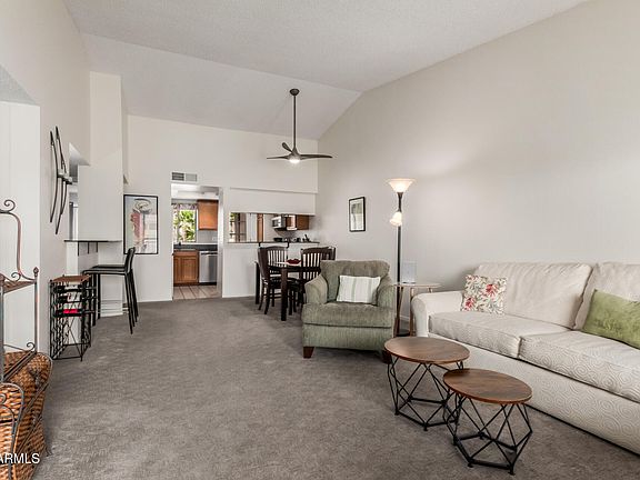 *ONLY UNIT AVAILABLE W/ VAULTED CEILINGS* All new HVAC, Counter Tops, Appliances, Fixtures, Carpet, Roof, and many more since 2021**See the upgrades lists attached**FULLY FURNISHED Enjoy the breeze coming through your screen doors all winter long! This is the Best Position of any of the condos in the community for many reasons! Lots of natural light, overlooking the larger pool, & community center! Walking distance to the golf course at Apache Wells Country Club.