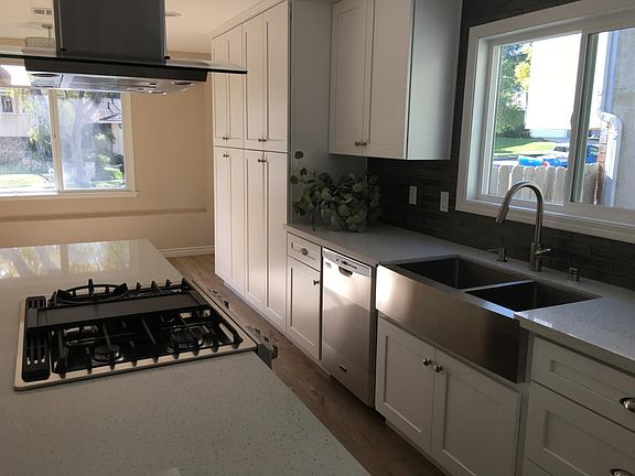 Gorgeous remodeled home with new flooring throughout. No carpeting. New windows. Everything redone to perfection! Marble tiles throughout master bathroom, new white shaker cabinetry in kitchen, with new stainless steel appliances. Lovely backyard with beautiful stone deck. Have to see to appreciate. Landlord pays for gardener