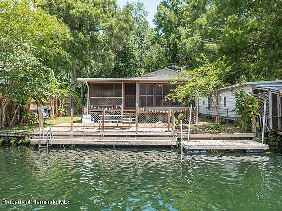 ACTIVE WITH CONTRACT - Accepting Back up offers during 7 day inspection period. Turnkey 3 Bedroom/2 Bath income producing vacation rental property with quick direct access to the Weeki Wachee River and the Gulf of Mexico. All 3 bedrooms have king size beds. Each Bedroom has complete sets of King sheets, mattress pads, quilts and pillows. Both Bathrooms come complete with bath towels and wash cloths and bath rugs. Completely stocked kitchen with everything, but the food. Home equipped with two T.V's, lamps and furniture all in good condition. The yard is fenced for privacy and the home is located within walking distance to the manmade beach at Roger's Park. Outdoors comes with grill, picnic table, table and chairs, 2 kayaks, 2 bicycles, garbage cans and fish cutting table. Deep water stationary dock for boatrs as well as floating dock. Swim with the Manatee, Kayak to the Weeki Wachee River or take your boat out to the Gulf. What you see is what you get. This has been a successful income producing rental home. Other features include a large enclosed side porch and a screened sun room with open views of the canal. Dine at the Upper Deck, fish at home or at Jenkin's Creek or take a 5 minute drive out to Bayport Inn and Pine Island Beach. Pine Island is a Gulf Beach with playground, food and restrooms. Also close to the Weeki Wachee Preserve and Linda Pederson Park. Marinas are close-by.